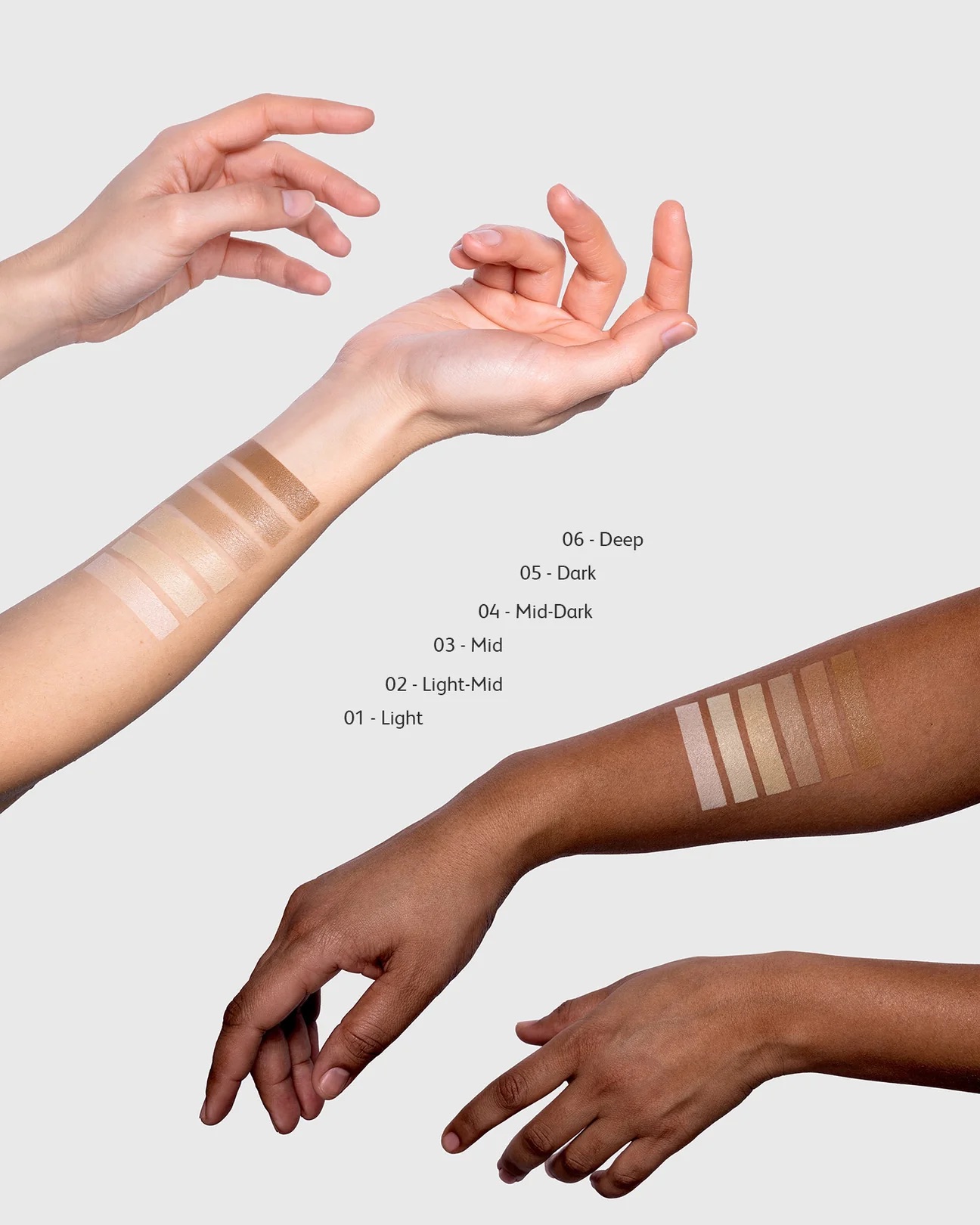 Available in 6 versatile shades, it adapts effortlessly to multiple skin tones thanks to its layering versatility and flawless performance.