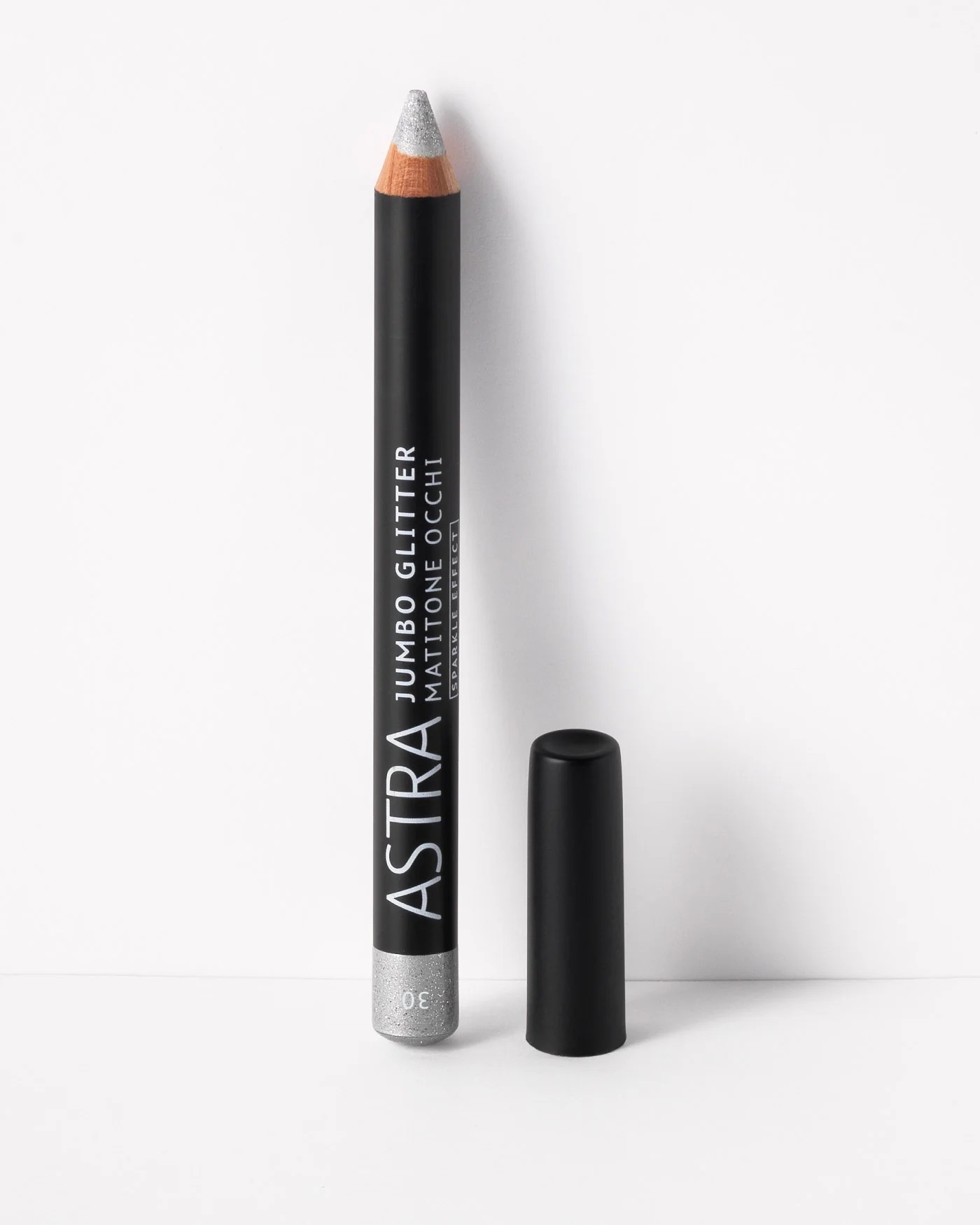 Jumbo Glitter is a creamy-textured eyeshadow pencil designed for precise application, enriched with sparkling glitter.